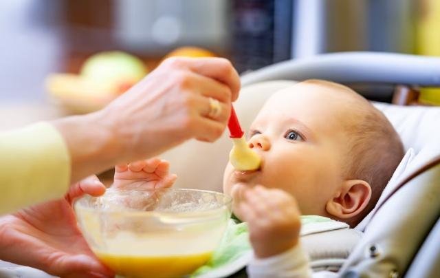 - Present comfortable, mashed meals similar to fruit and veggies, and rice.